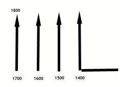 In the year 1400, time begins to fold back and forth upon itself; still continuing from right to left, but starting in the year 01, going straight up to the year 00, and then turning left and skipping back to the starting point of 01, to repeat the upward journey until the year 1800.